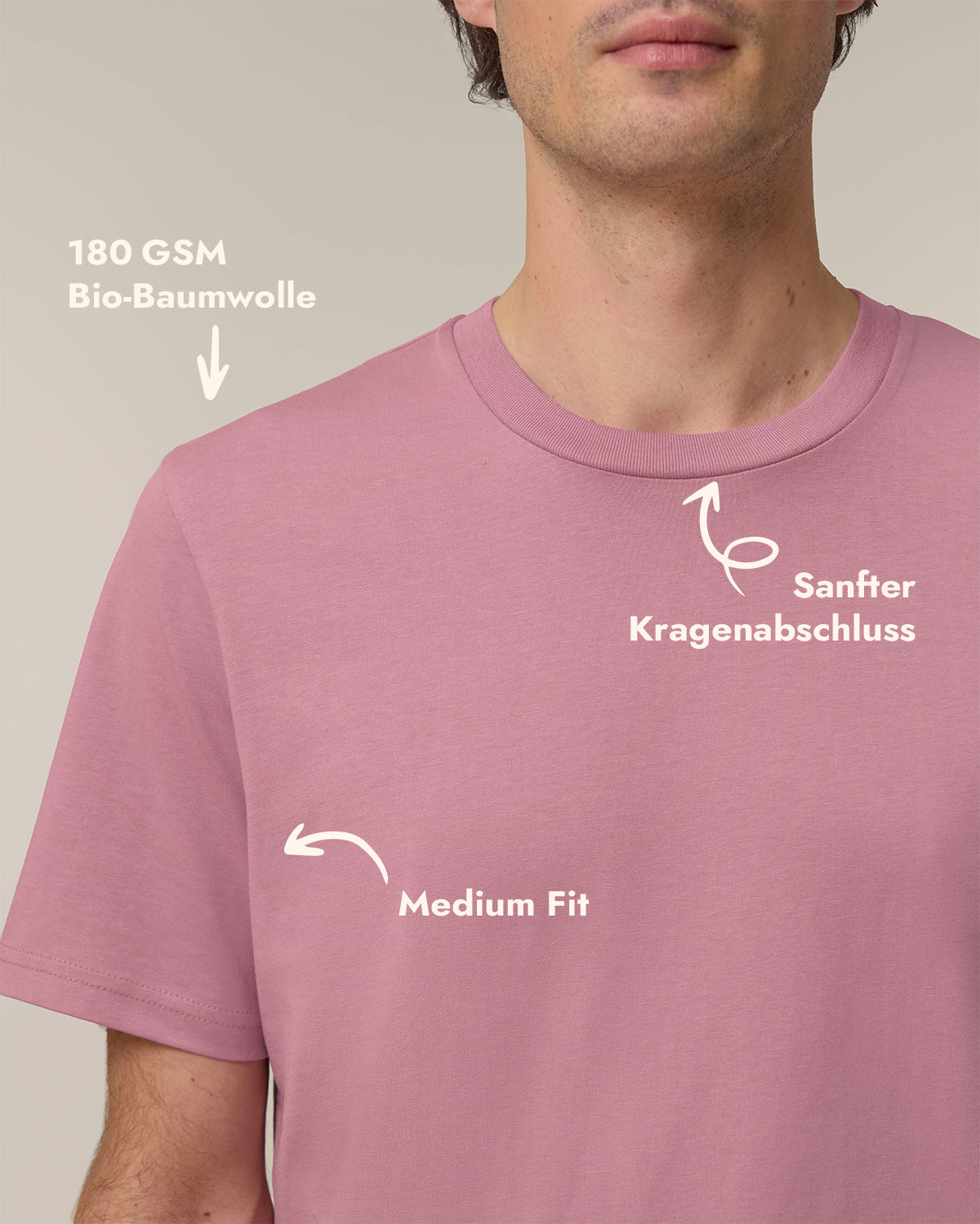 • 180 GSM Stoffgefühl: angenehm dicht, wertig und alltagstauglich